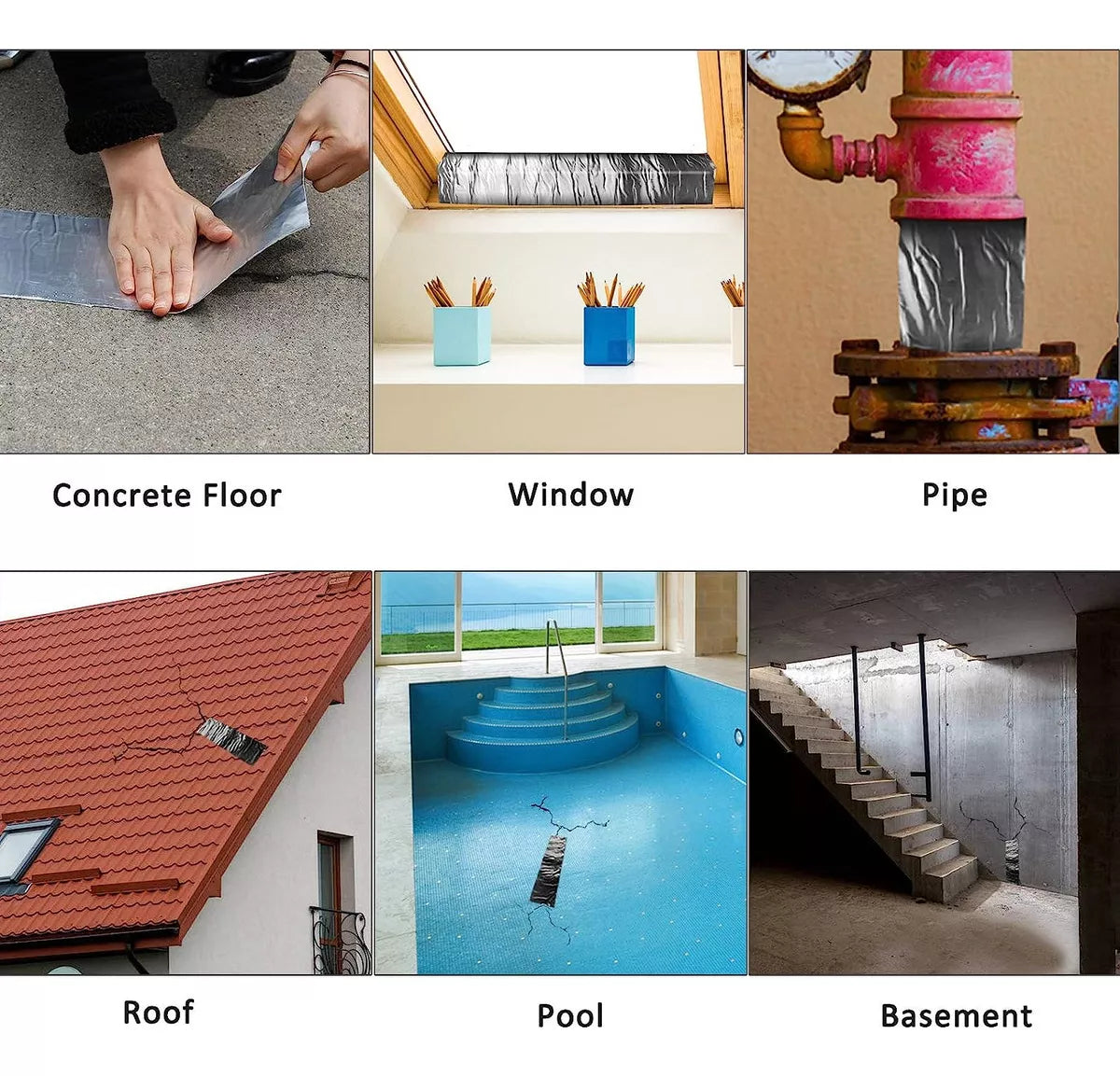 1. Cinta de reparación de techo, cinta de sello de goma cubierta con papel de aluminio.