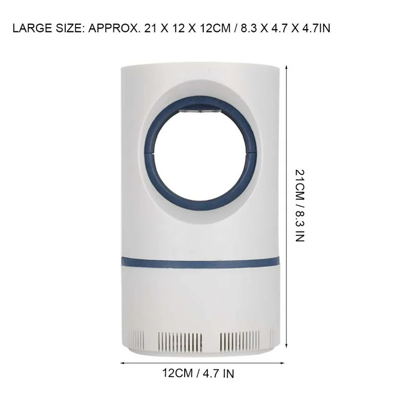 Facil y practico de usar. Esta trampa de mosquitos los atrae con su luz ultravioleta UV para después succionarlos con el ventilador que incluye y atraparlos en su trampa. El ventilador en la trampa para mosquitos los chupa, con la jaula a prueba de fugas combinada. - Es ligero y no libera ningún mal olor, humos peligrosos o sustancias letales en tu entorno vital. Ideal para proteger a los niños y adultos de los riesgos de los mosquitos. Seguro para humanos y mascotas.